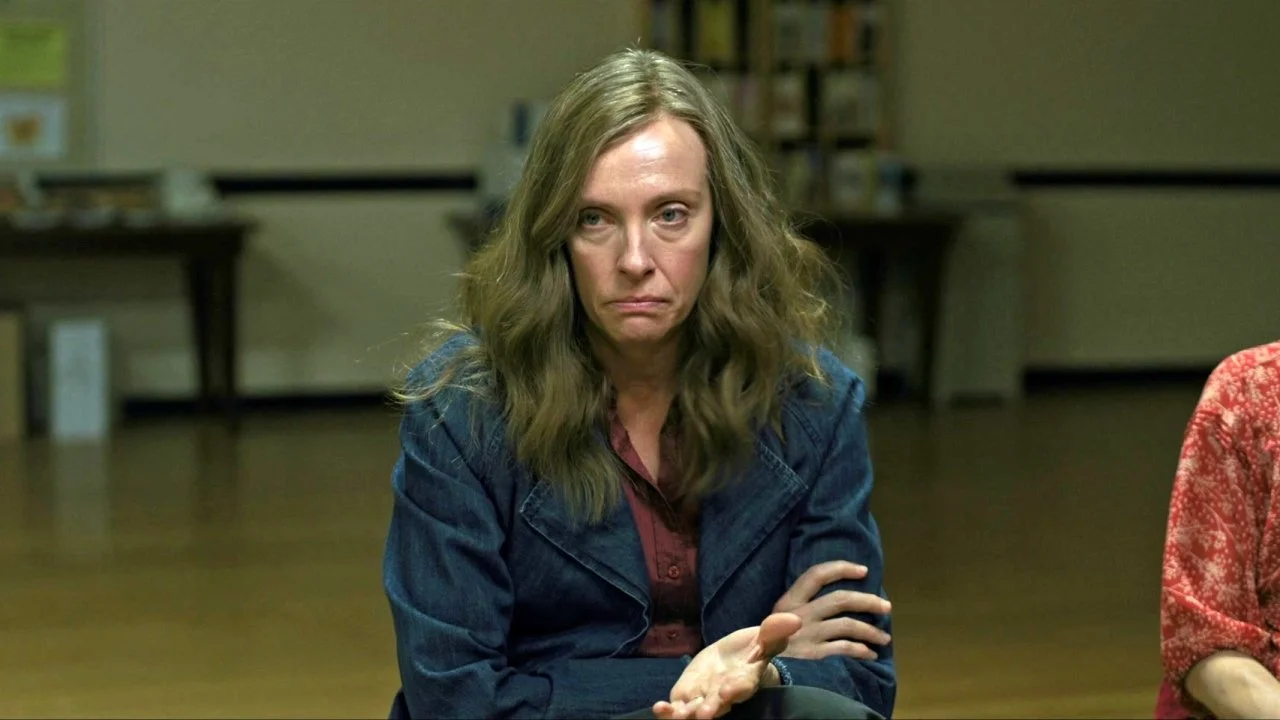 Aster masterfully crafts scenes in HEREDITARY. They’re all nuanced and layered and offer new meaning with each watch. One of my favorite scenes is Annie’s visit with a grief group after her mother’s funeral. She delivers a long, brilliant monologue. On first watch, the scene appears to be about her, her struggle with her emotions, and her complicated relationship with her mother. The monologue’s exploration of her emotions and her family’s past is so well crafted, the scene is totally gripping even if it only serves that purpose.